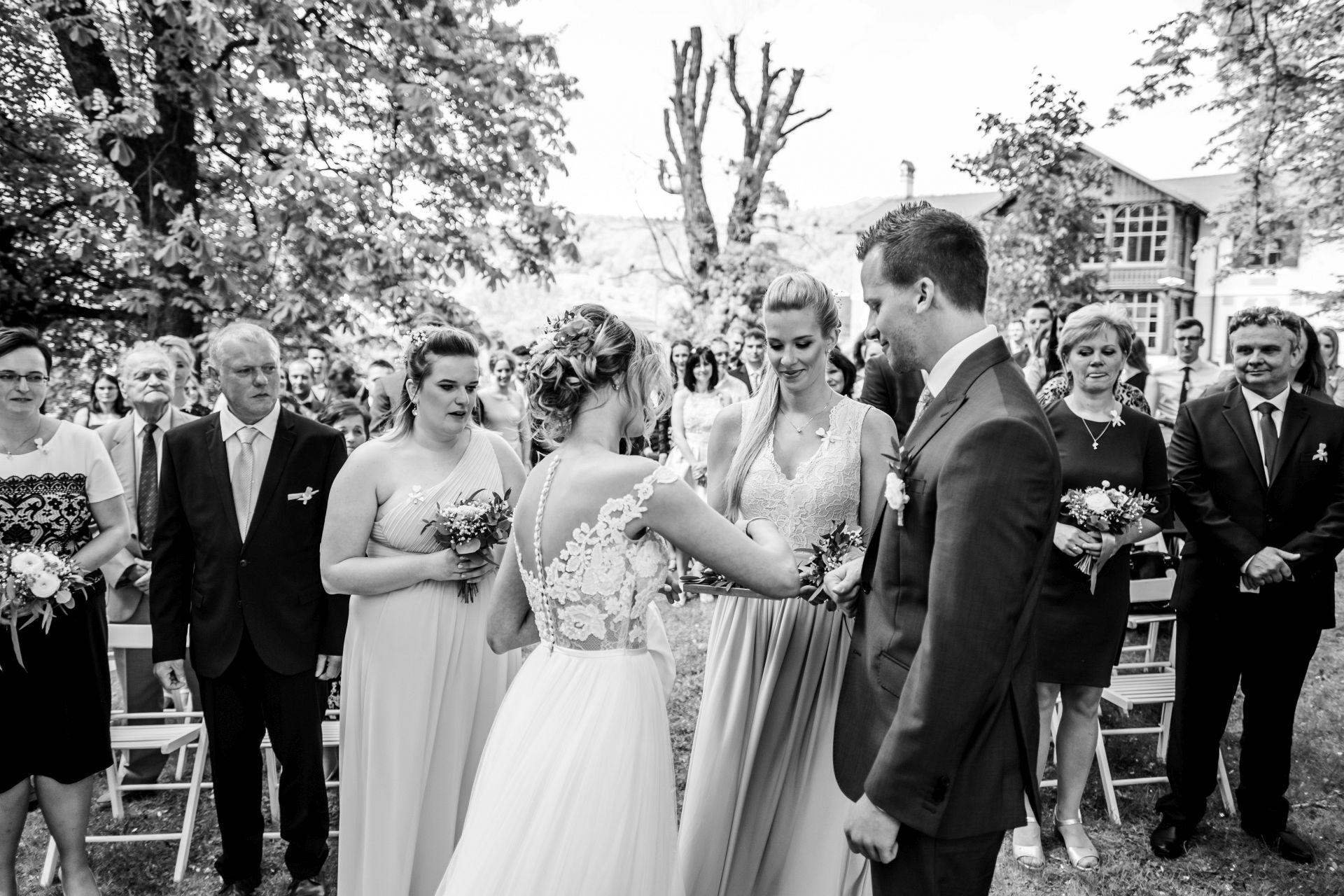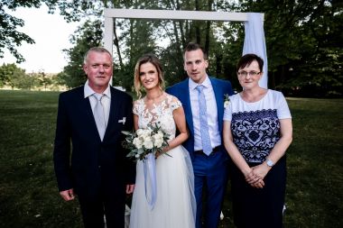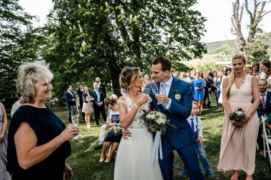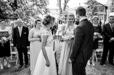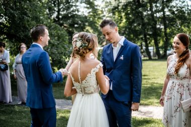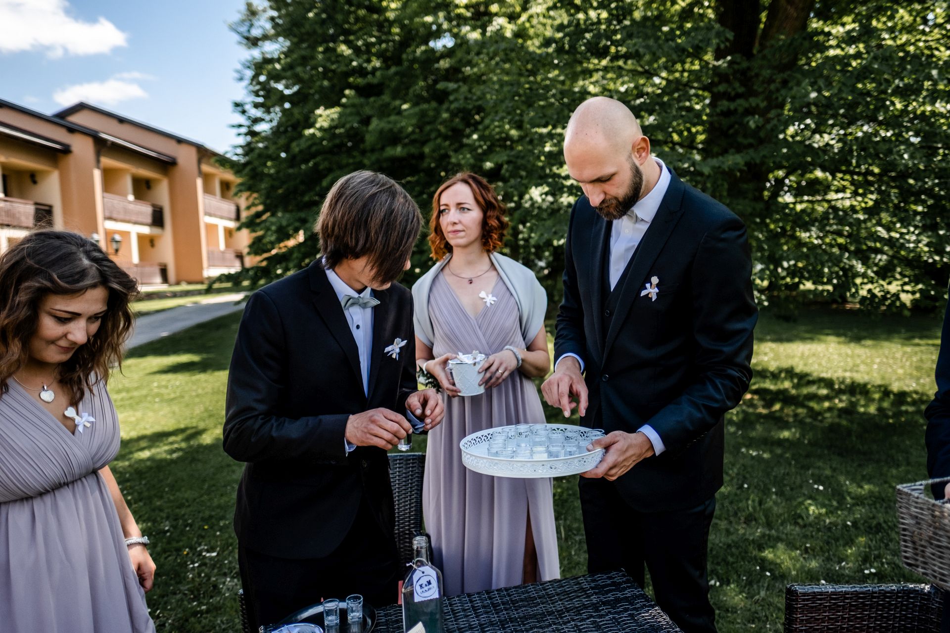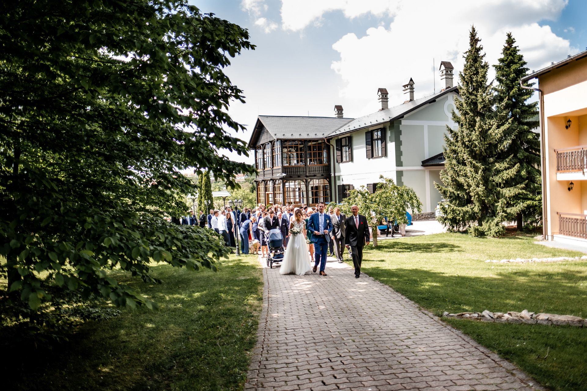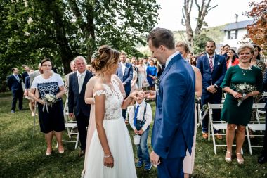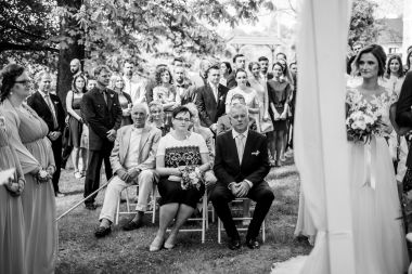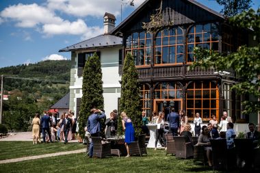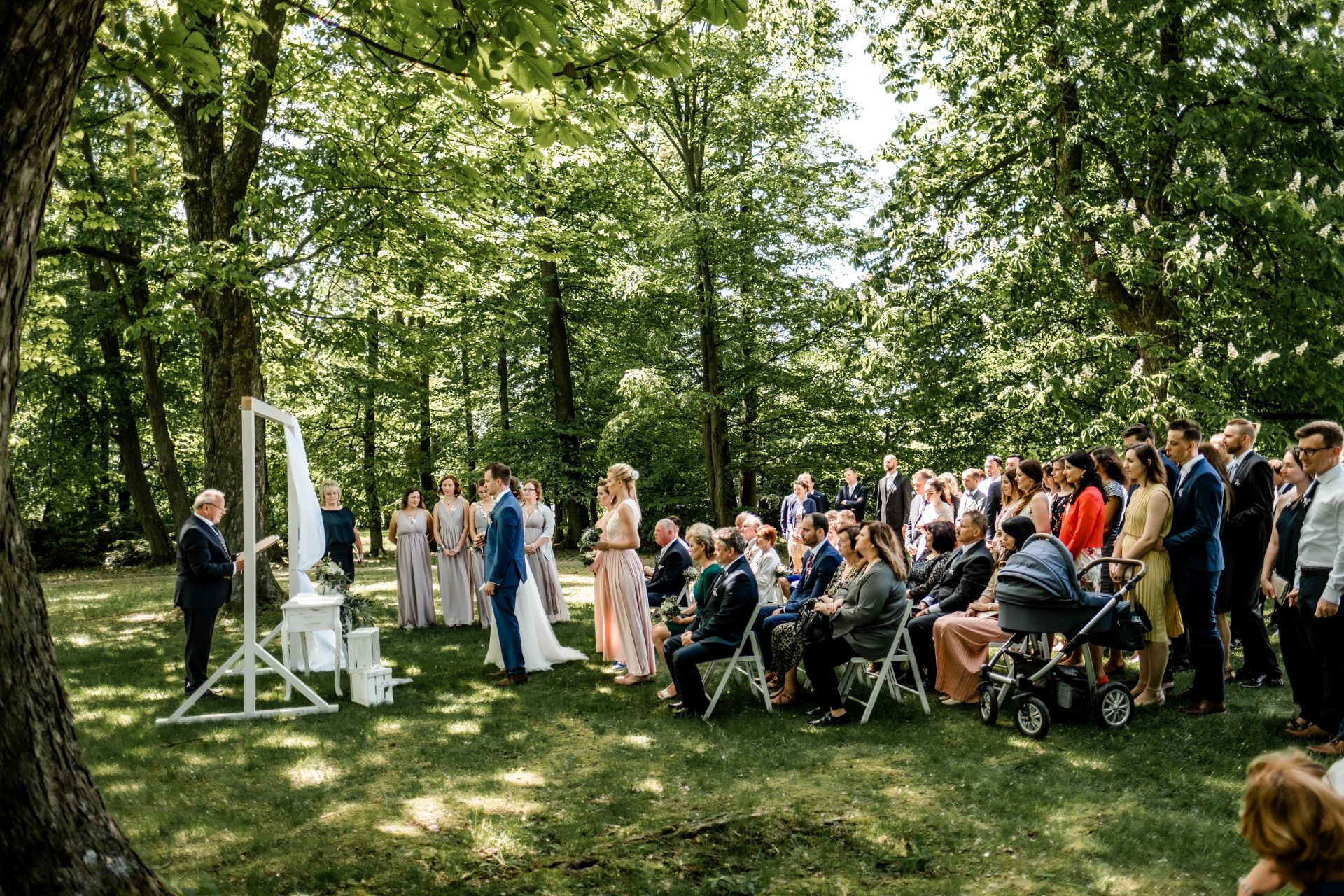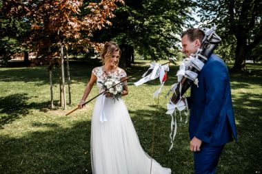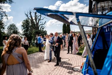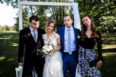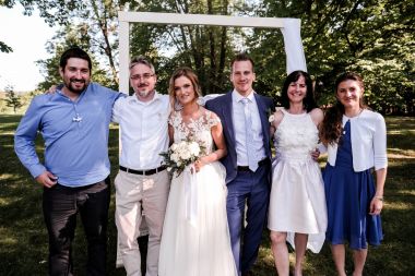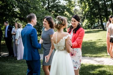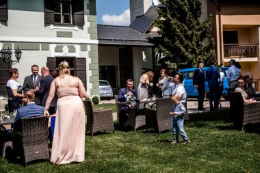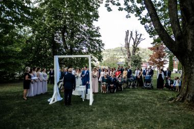 Obřad se koná před hotelem v parku a prázdná břicha budeme plnit v nedalekém sálu.