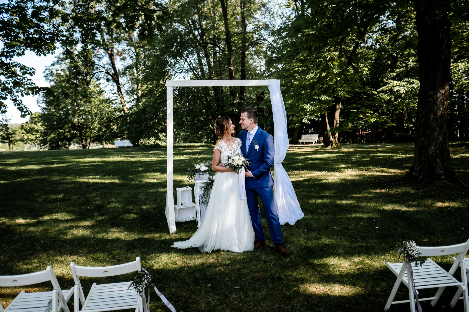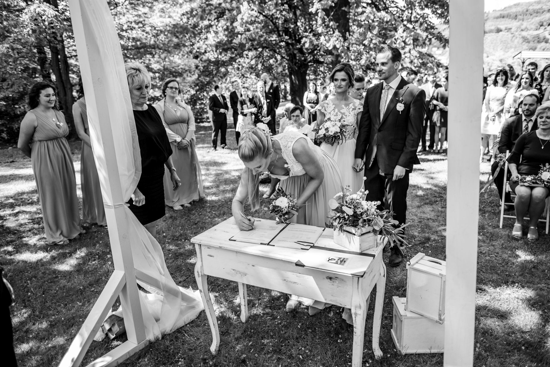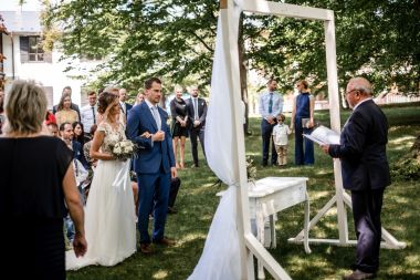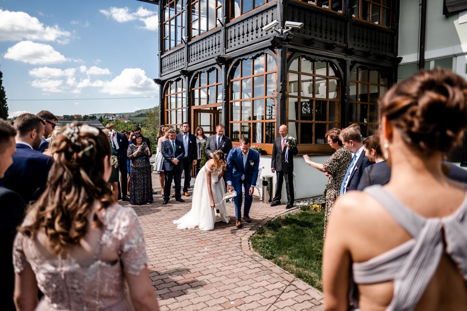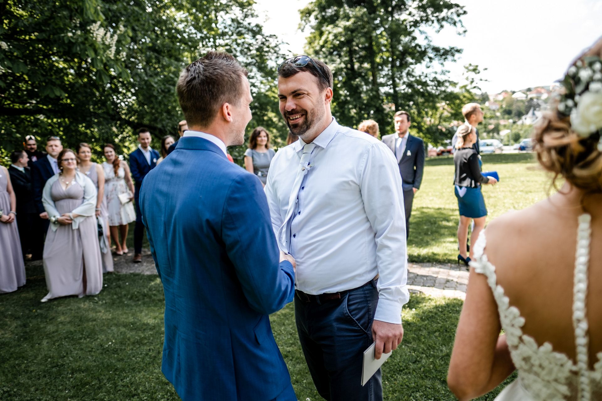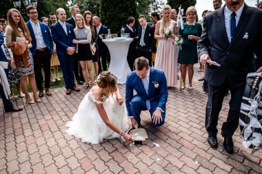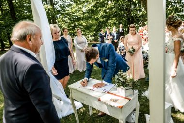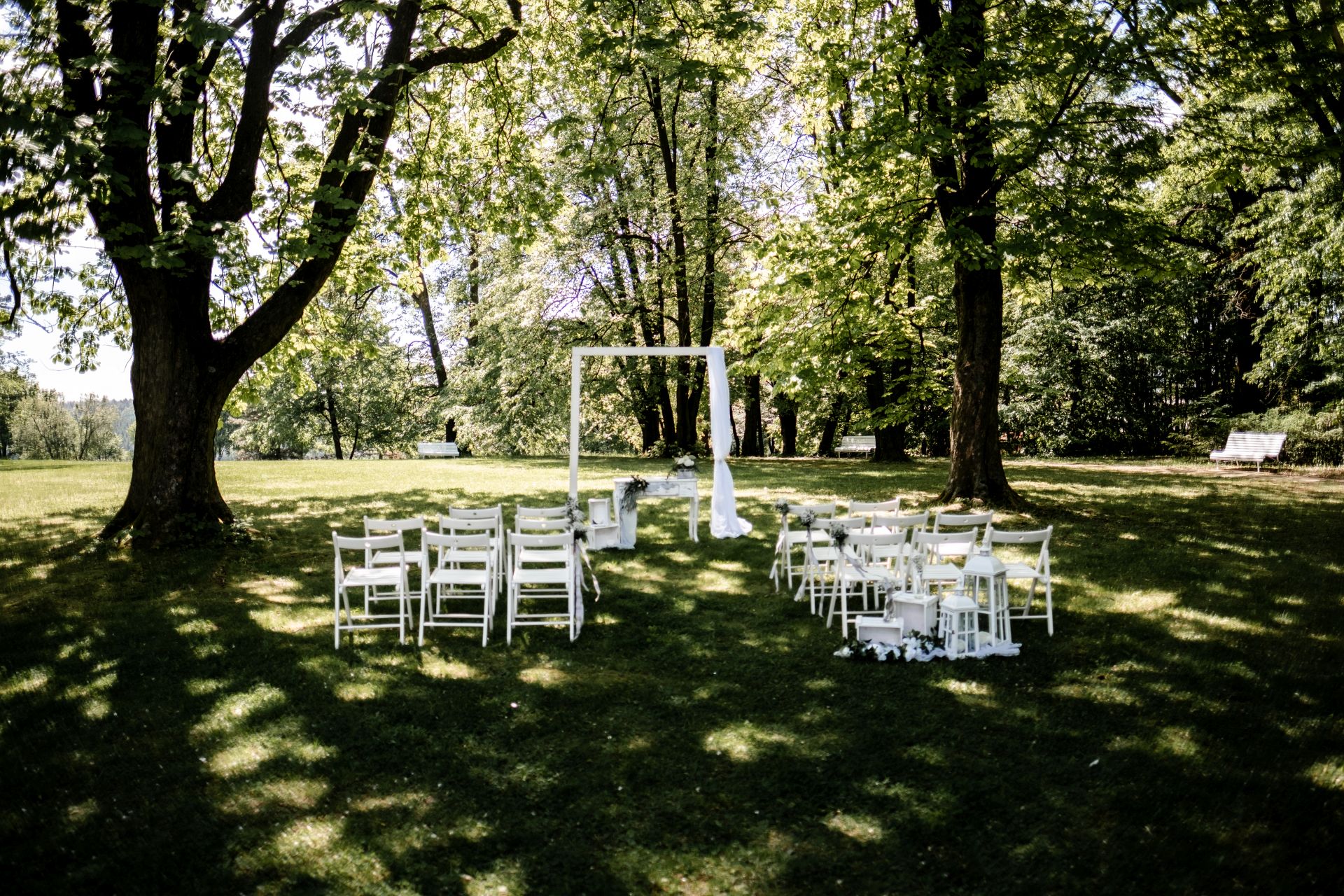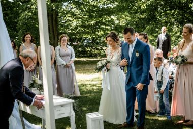 Obřad se koná před hotelem v parku a prázdná břicha budeme plnit v nedalekém sálu.