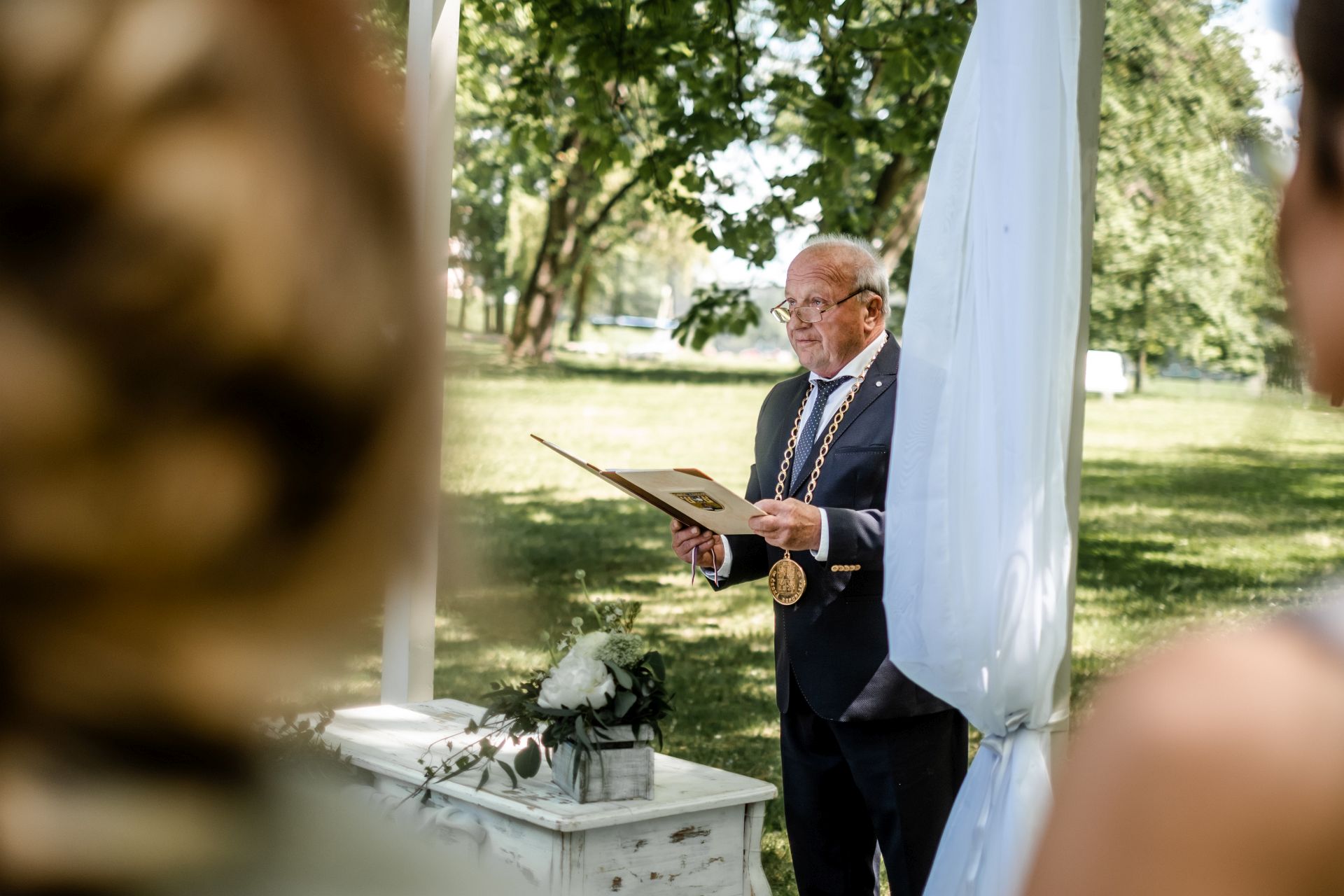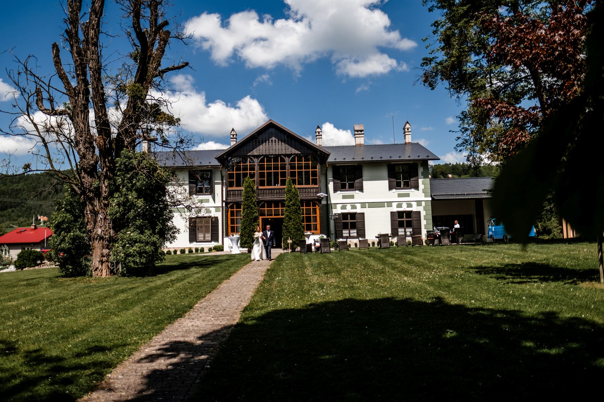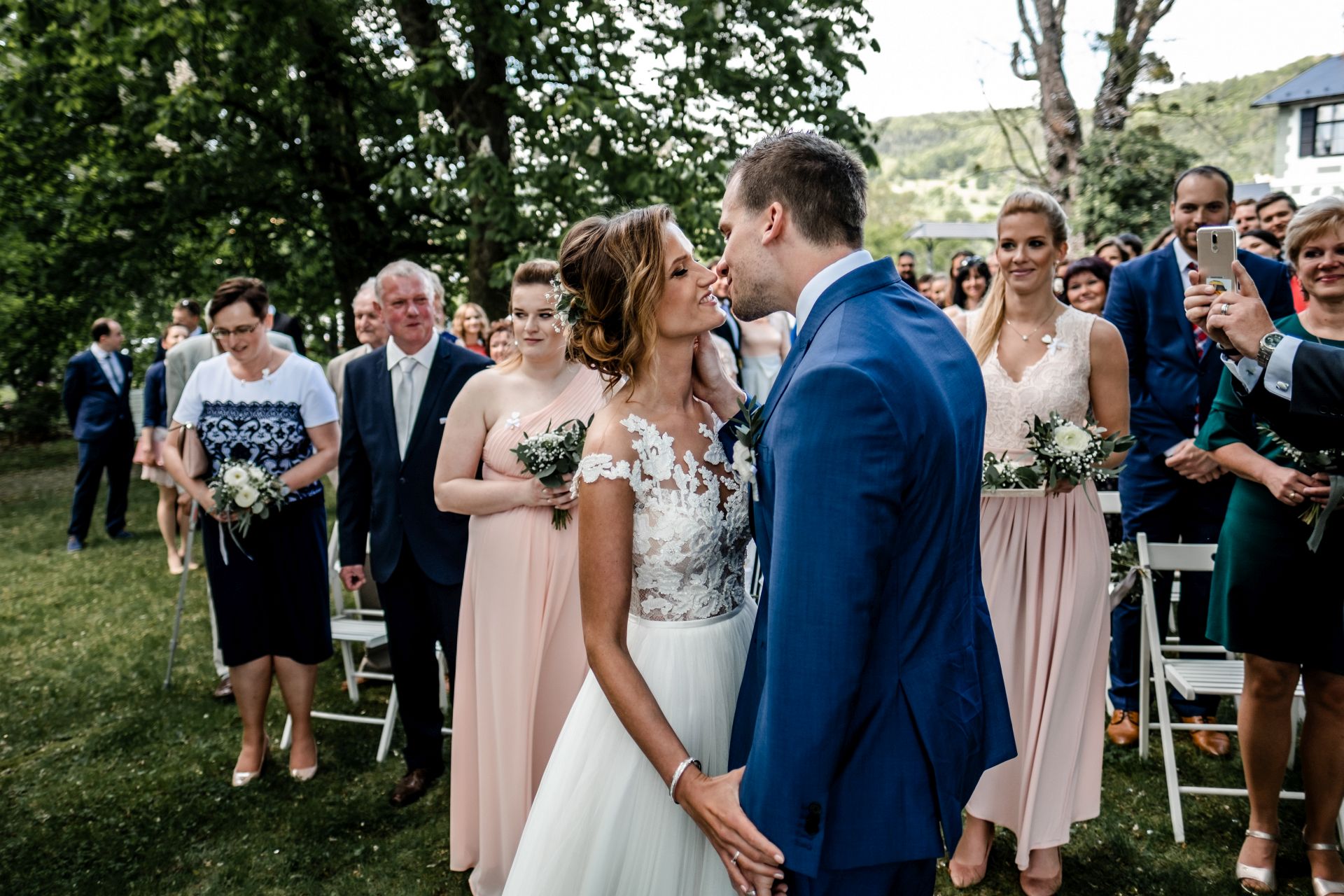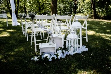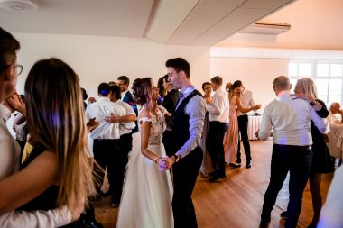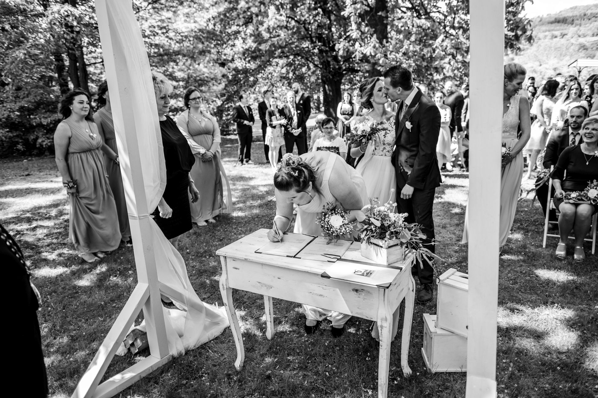 Obřad se koná před hotelem v parku a prázdná břicha budeme plnit v nedalekém sálu.