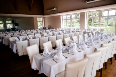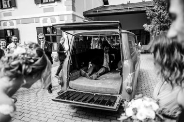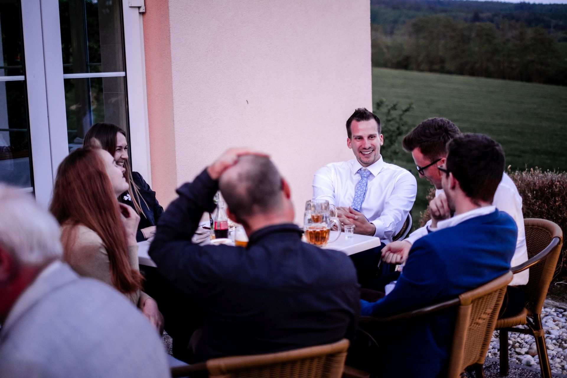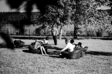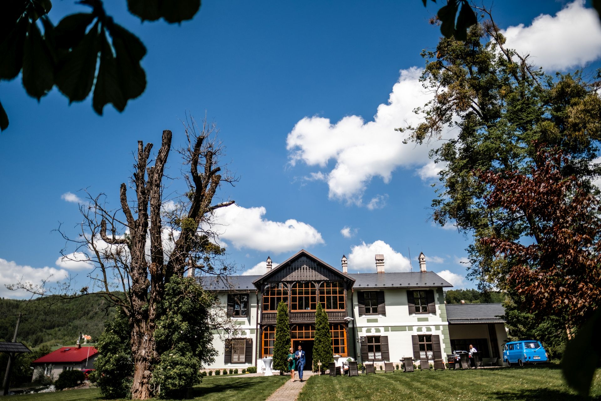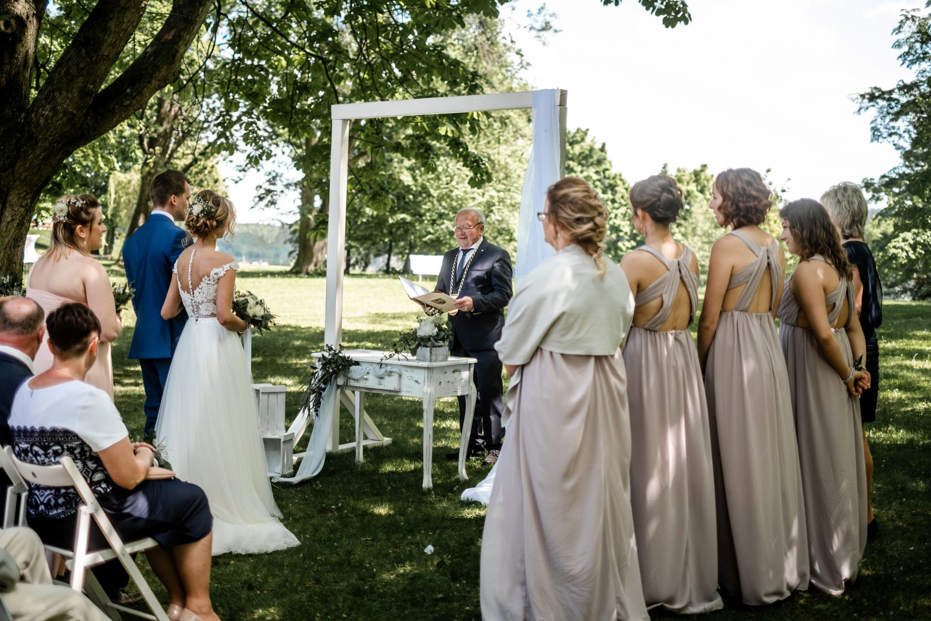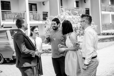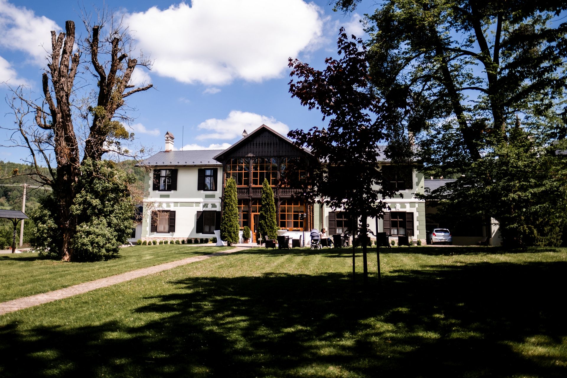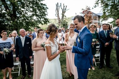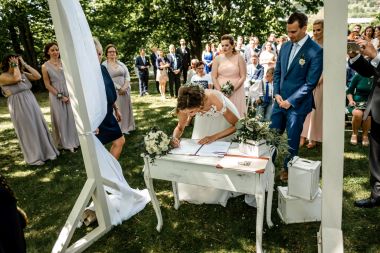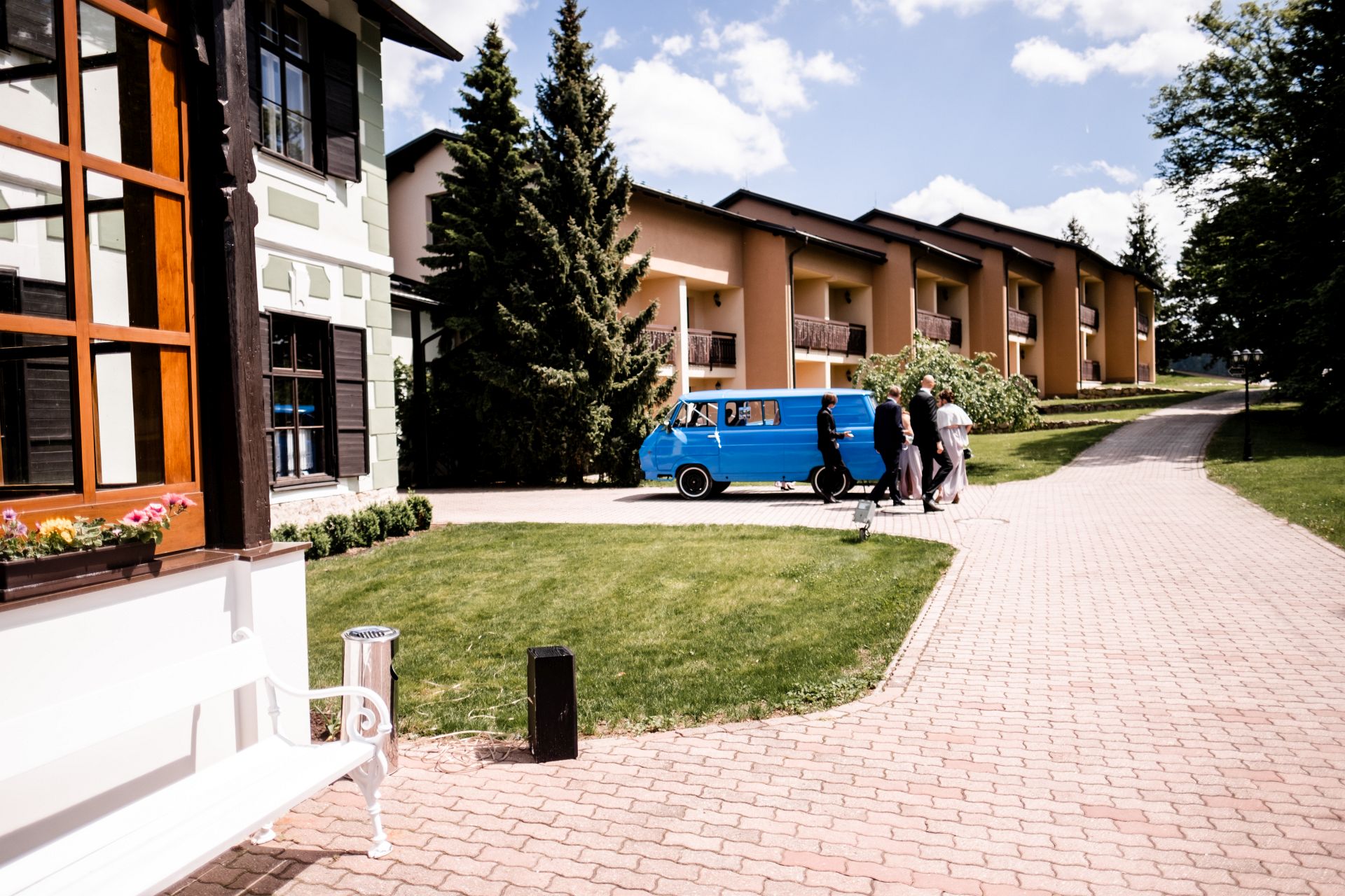 Obřad se koná před hotelem v parku a prázdná břicha budeme plnit v nedalekém sálu.